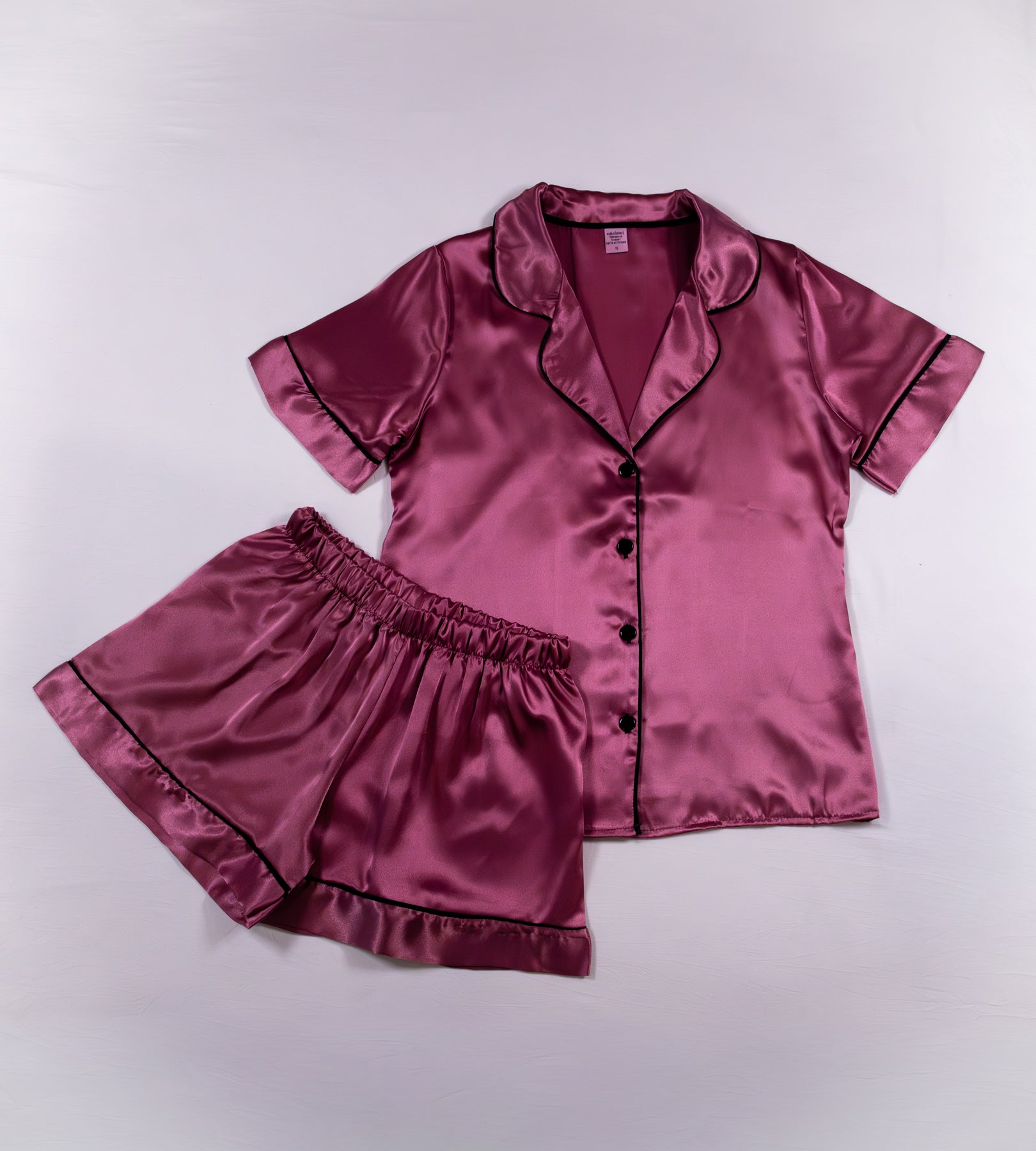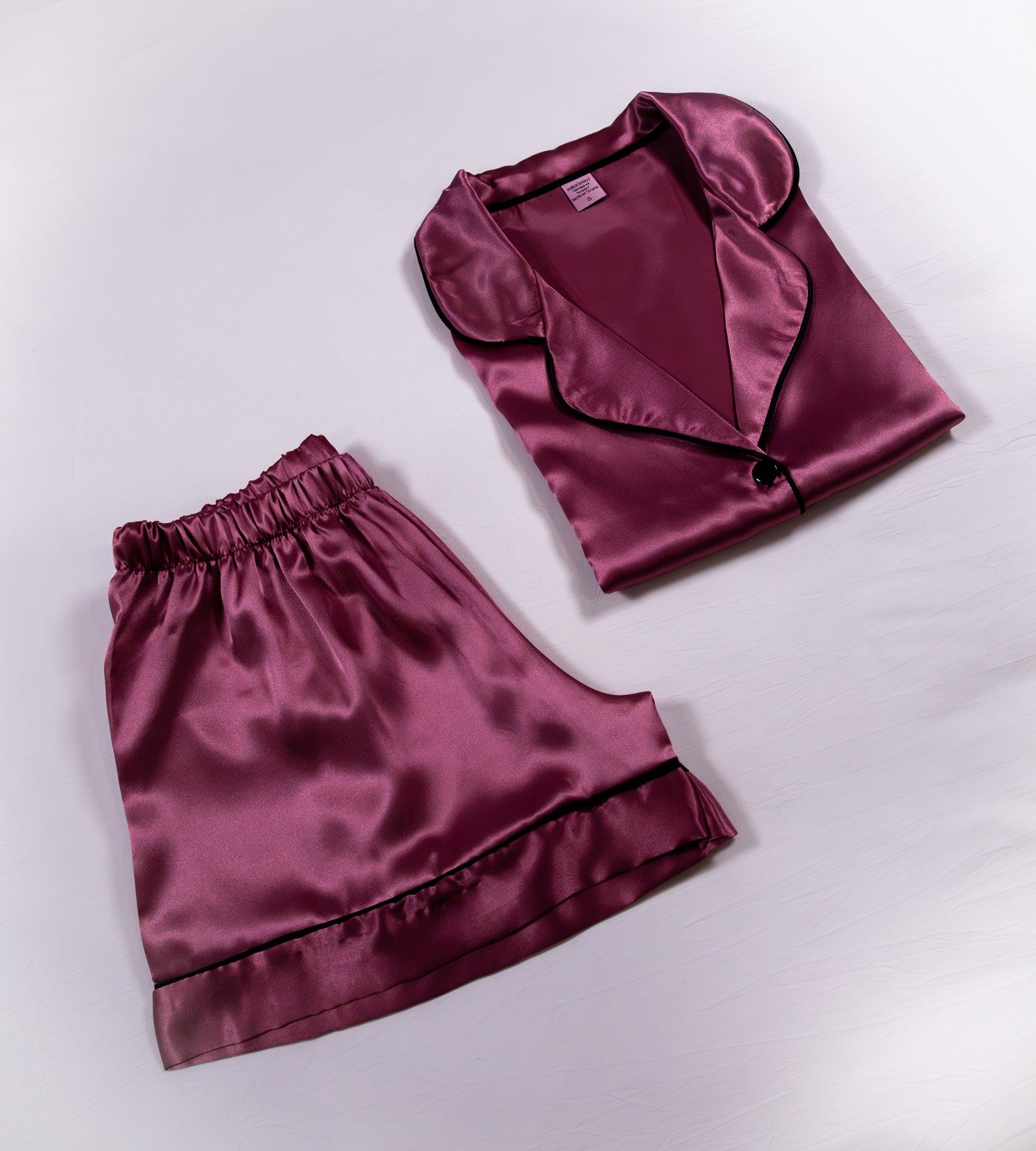 Deep purple satin with a liquid sheen and tailored contrast piping. Bold, indulgent, and unapologetically evening-coded.