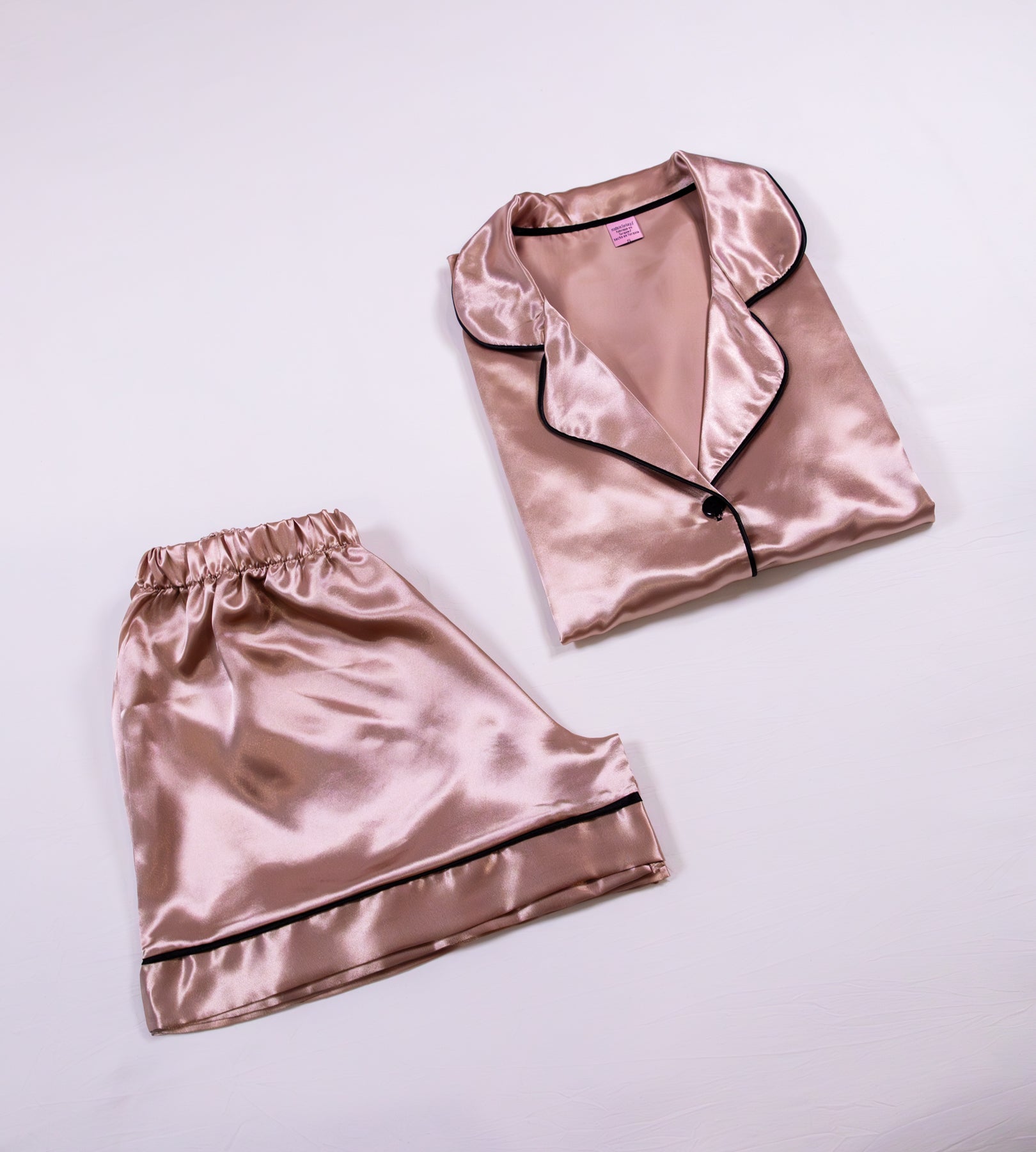 A champagne beige satin set with a warm, luminous finish. Quietly elegant and endlessly wearable, from dusk through dawn.